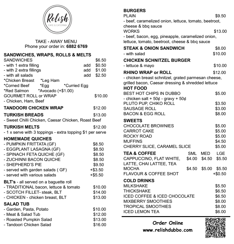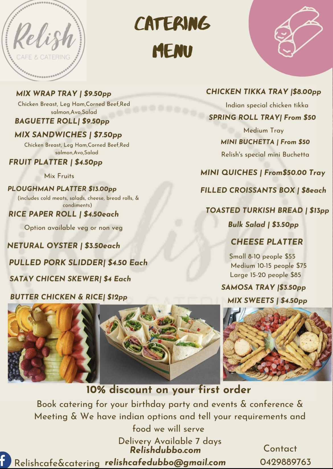 At Relish Cafe & Catering we offer meals of excellent quality and invite you to try our delicious food.